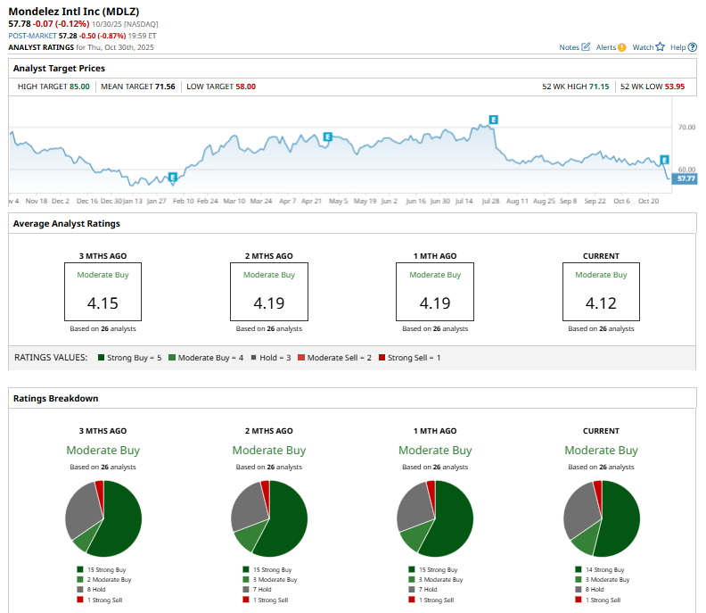The mean price target of $71.56 represents a 23.8% potential upside from MDLZ’s current price levels, while the Street-high price target of $85 suggests an upside potential of 47.1%.