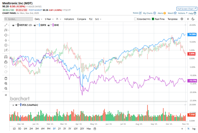 MDT stock has surged marginally over the past year, trailing behind the S&P 500 Index ($SPX), which surged by 19.6% during the same period. Year-to-date, MDT has risen 12.9%, narrowing the gap between the index’s 16.5% advance.