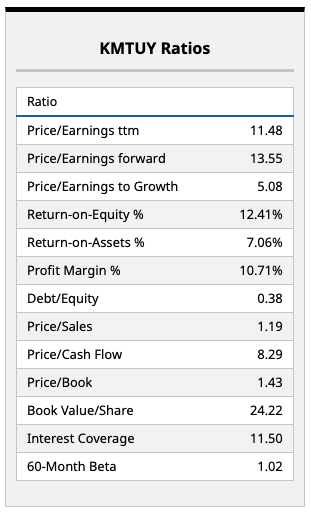 Interestingly, there are currently five Wall Street analysts covering KMTUY stock, with a consensus price target of just $31.70 per share put on this name.