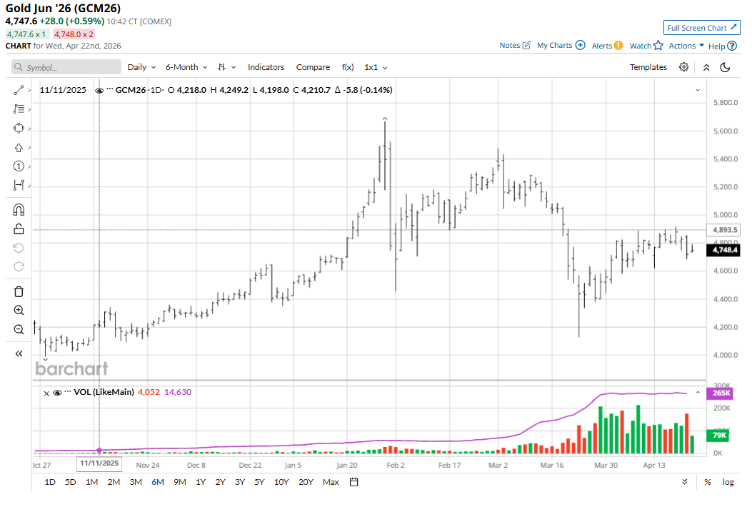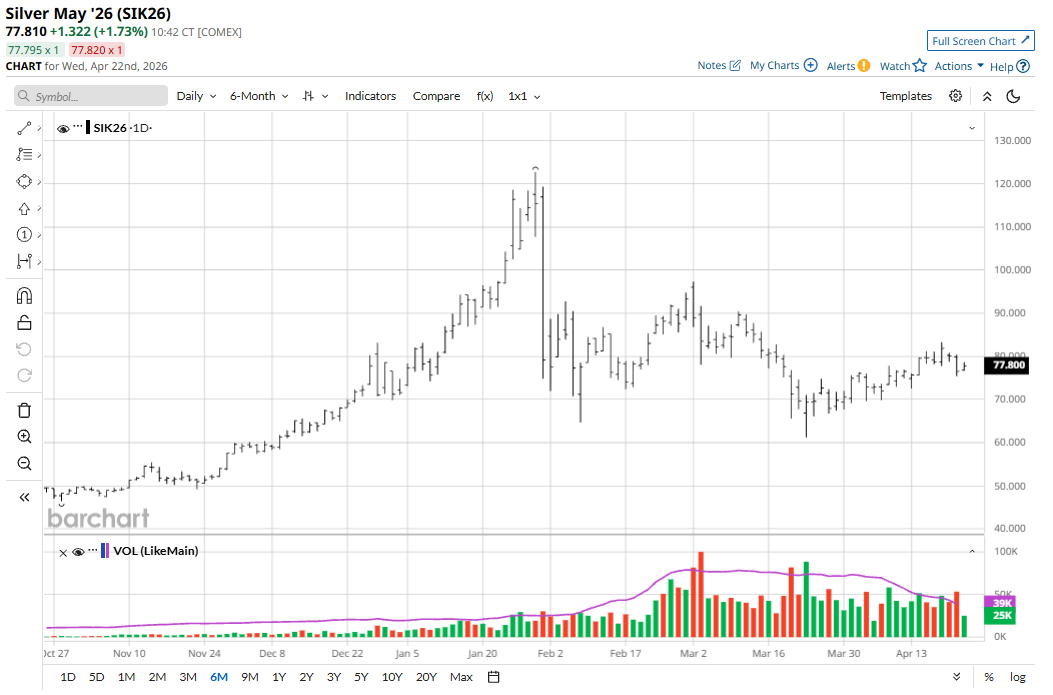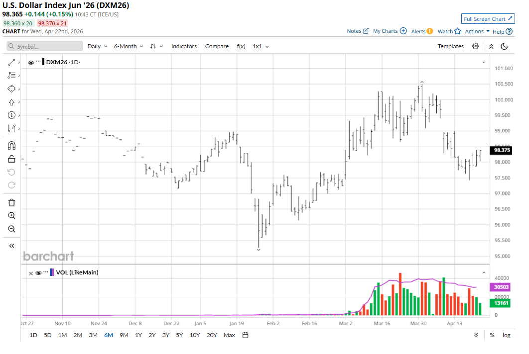 There are several major “outside markets” that can and do have a daily, and sometimes significant, impact on the price movements of gold (GCM26) and silver (SIK26). These markets include global stock indexes, the U.S. dollar index ($DXY), crude oil (CLM26), and U.S. Treasuries. Importantly, the outside markets’ impact on the two precious metals is not static. Let’s look at the key outside markets and their present daily price impacts on gold and silver.