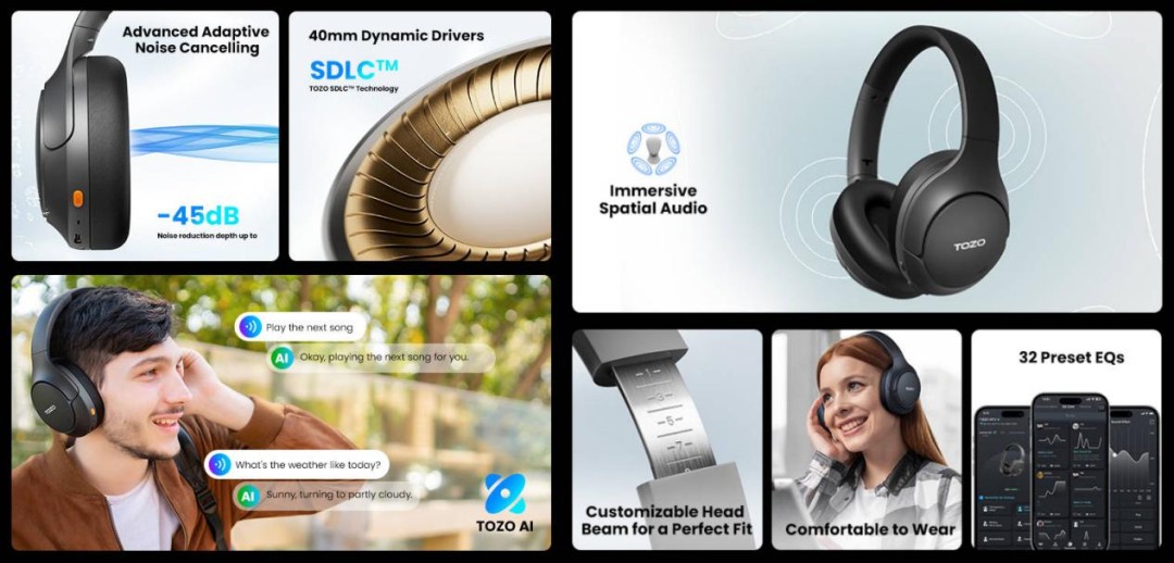 Following its successful debut, the TOZO HT3 Over-Ear Headphones are continuing to capture attention across the audio world — and for good reason. With its immersive spatial audio, premium Hi-Res sound quality, and AI-enhanced smart features, the HT3 transforms every listening moment into an experience that surrounds you.
