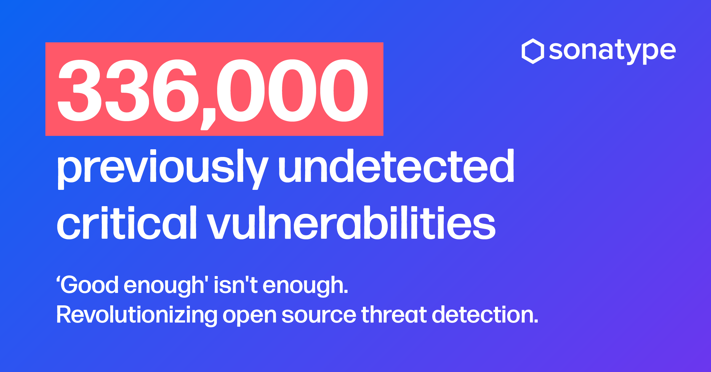Speaking on the announcement, Wayne Jackson, CEO of Sonatype said, "The reality is, 'good enough' is not enough when it comes to securing the open source software that underpins much of the digital world. Bad actors are constantly evolving their methods, and to help our customers stay ahead of them, we must evolve as well. Our commitment is to provide the deepest, most comprehensive insights into open source vulnerabilities, coupled with the tools and automation necessary to boost developer productivity while minimizing security risks."