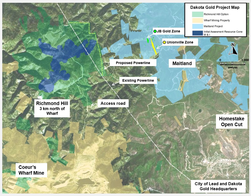 Figure 3. Aerial map of Dakota Gold Corp. Richmond Hill and Maitland Gold Projects.