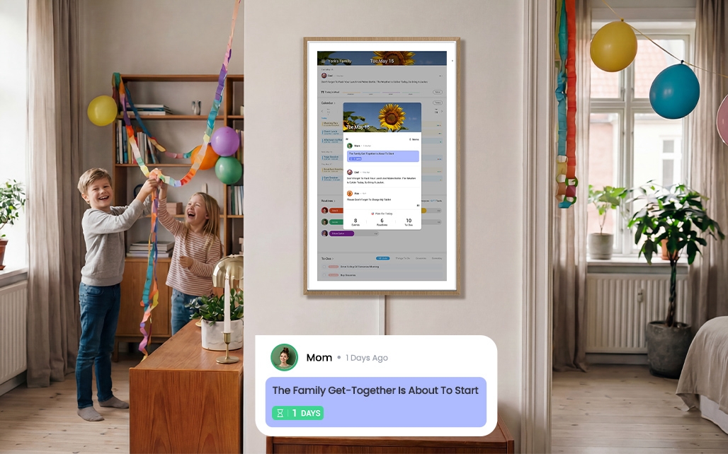 The feature also supports visual countdowns, allowing families to track upcoming birthdays, holidays, family gatherings, or school deadlines. By displaying time visually, Message Board helps create a shared sense of anticipation and awareness around important moments. In addition, customizable color backgrounds allow different types of messages to be distinguished at a glance, making it easier to prioritize information in busy households.