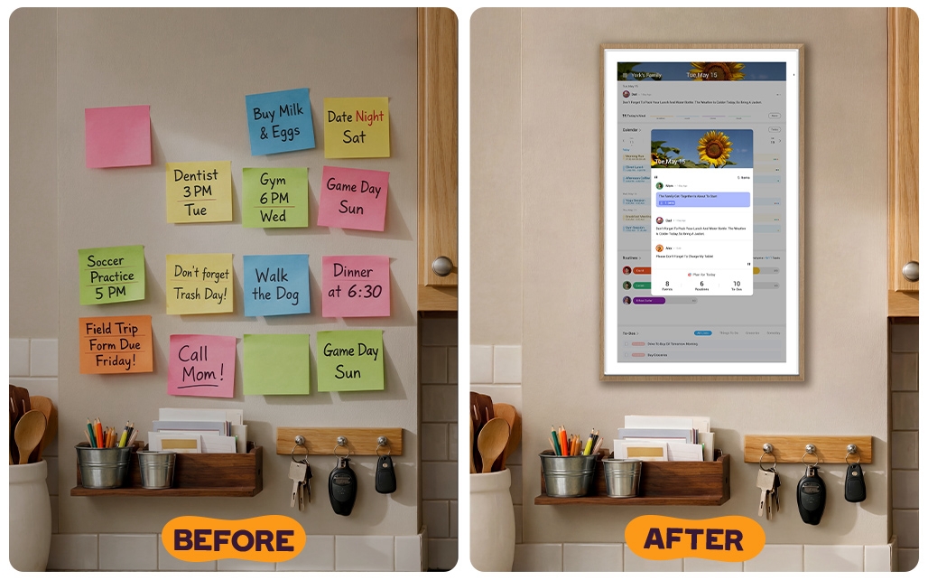 Ensures everyone at home sees important reminders without relying on repeated texts, phone calls, or handwritten notes