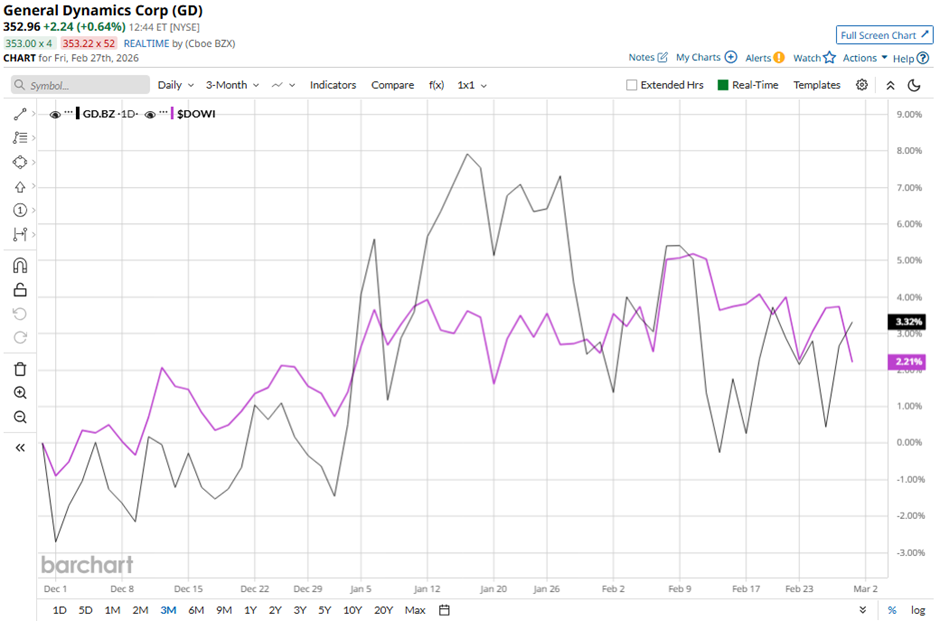 GD stock is up 4.7% on a YTD basis, outperforming DOWI’s 1.8% rise. Moreover, longer term, shares of the company have surged 40% over the past 52 weeks, compared to DOWI’s 13.1% return over the same time frame.