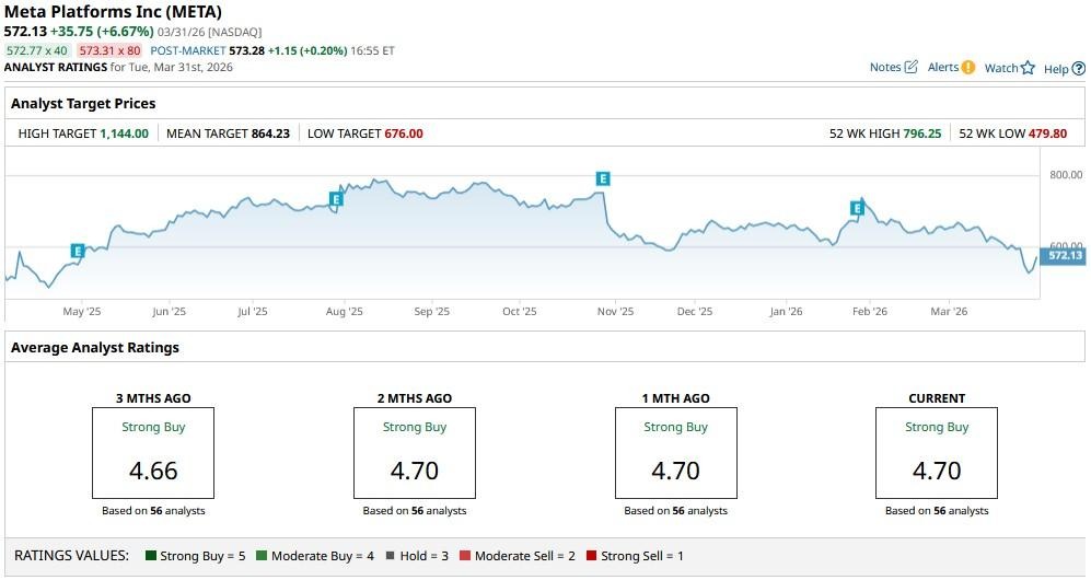 Meta Platforms (META) shares closed higher on March 31, in tandem with a broader market rally, amid reports that both the U.S. and Iran are now willing to de-escalate military hostilities.