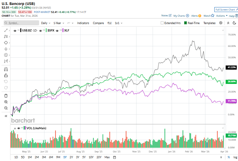 Over the past year, USB shares have soared 23.1%, outpacing the S&P 500 Index ($SPX) 17% gain and the Financial Select Sector SPDR Fund’s (XLF) marginal return over the same time frame.