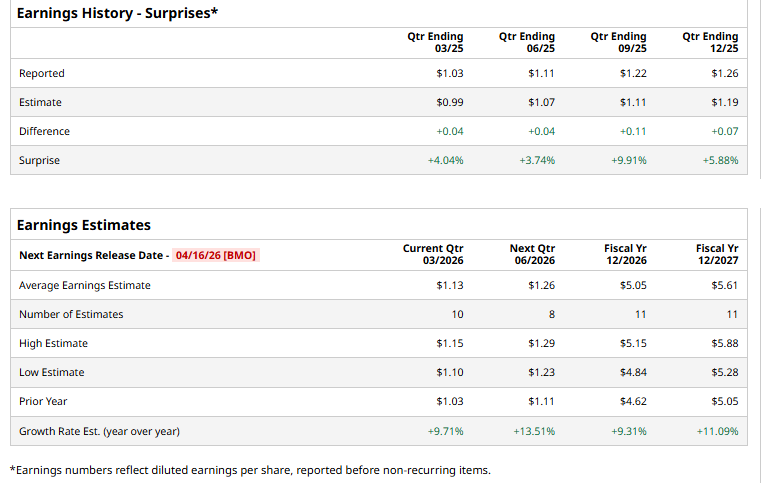 The bank is expected to announce its fiscal Q1 earnings on Wednesday, Apr. 16, before the market opens. Ahead of the event, analysts expect USB to report a profit of $1.13 per share on a diluted basis, increasing 9.7% from the year-ago value of $1.03. The company has surpassed the consensus estimates in each of the last four quarters, which is admirable.