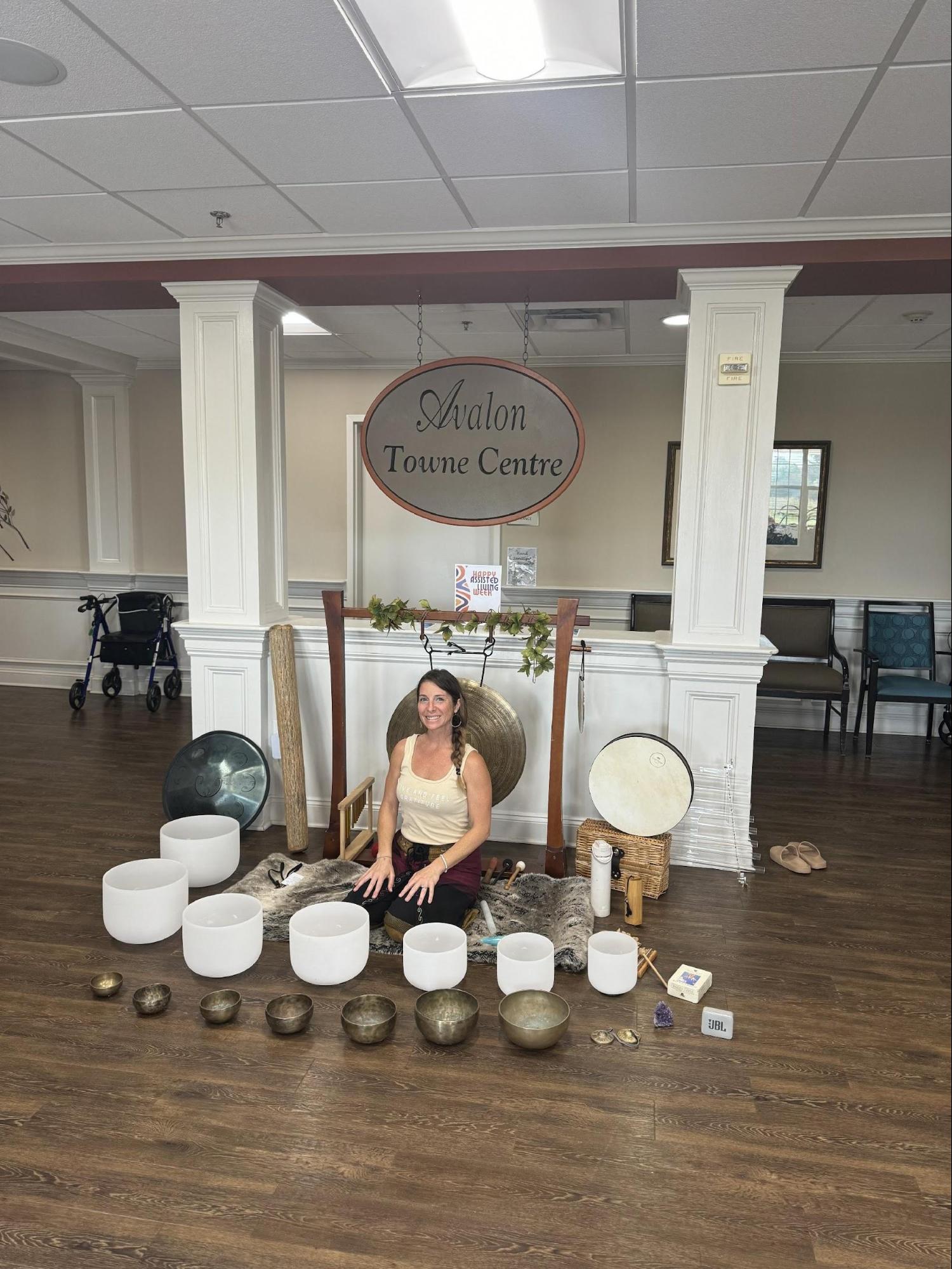 Christina Flanagan Bistis, Wellness and Community Outreach Coordinator at Bridgeway Senior Healthcare, leads sound meditation, yoga and mindfulness sessions for staff, residents, families, and the community as part of Bridgeway’s innovative Wellness Program.