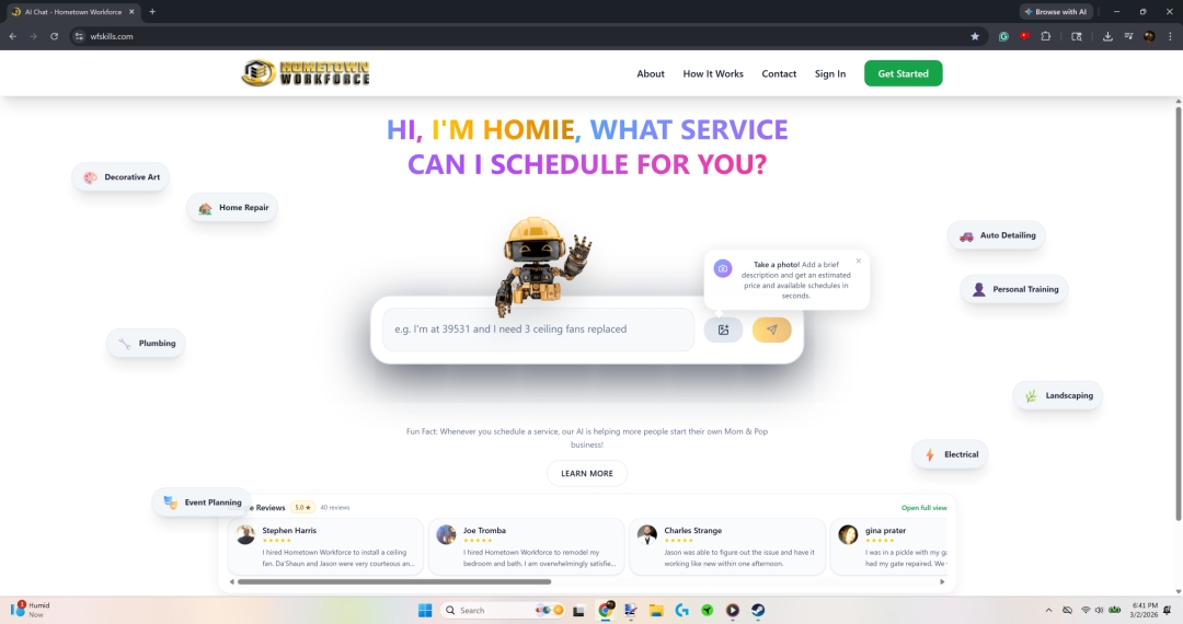 “Our AI handles the business side so you can focus on the work,” Hometown Workforce founders said. “Every job booked through our platform feeds into a system designed to grow your business—optimizing your schedule, your routes, your pricing. We turned running a company into something anyone can do.”