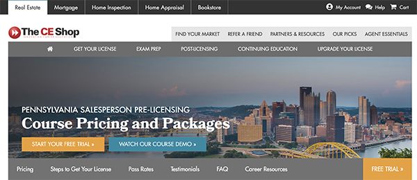 While many factors influence the annual salary of a real estate agent, according to Indeed.com, full-time Pennsylvania real estate agents can average $70k/year and have a lifetime of tools from The CE Shop to grow your knowledge and potential income. The CE Shop also offers additional certifications like Mortgage Loan Origination and Home Inspection to round out your artillery of professional success tools.