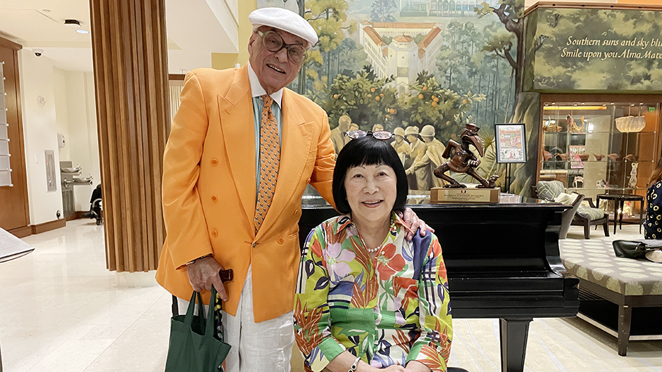 In presenting to the Blochs a replica of the iconic bronze statue of Sebastian the Ibis that stands in front of the Newman Alumni Center, Josh Friedman, senior vice president of development and alumni relations, remarked, “StuBloch’s and Ambassador Julia Chang Bloch’s vision and generosity made this lecture series possible. [DALS] not only recognizes the excellence of our alumni, by shining a light on their professional achievements, it also reflects the light of this University, and it demonstrates the Blochs’ belief in the transformative power of education.”