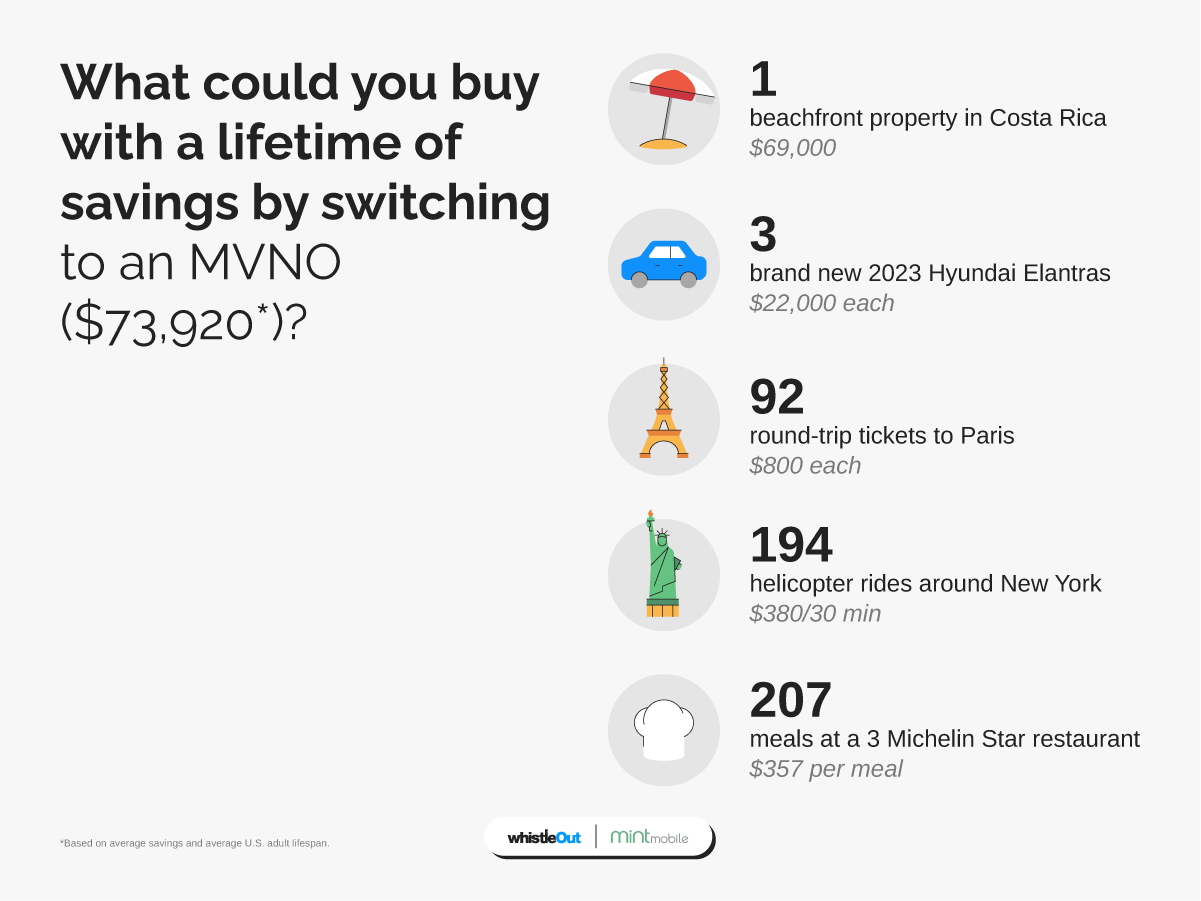 - The savings accrued over a lifetime for someone on an MVNO versus someone on a major carrier is $73,920
