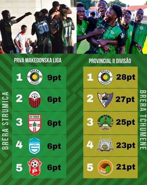 Milan and Dublin , Aug. 24, 2023 (GLOBE NEWSWIRE) -- Brera Holdings PLC (Nasdaq: BREA) (“Brera Holdings” or the “Company”) today announced that two of its football clubs, Brera Strumica in Europe (North Macedonia) and Brera Tchumene in Africa (Mozambique), have both reached the top of the standings in their leagues.
