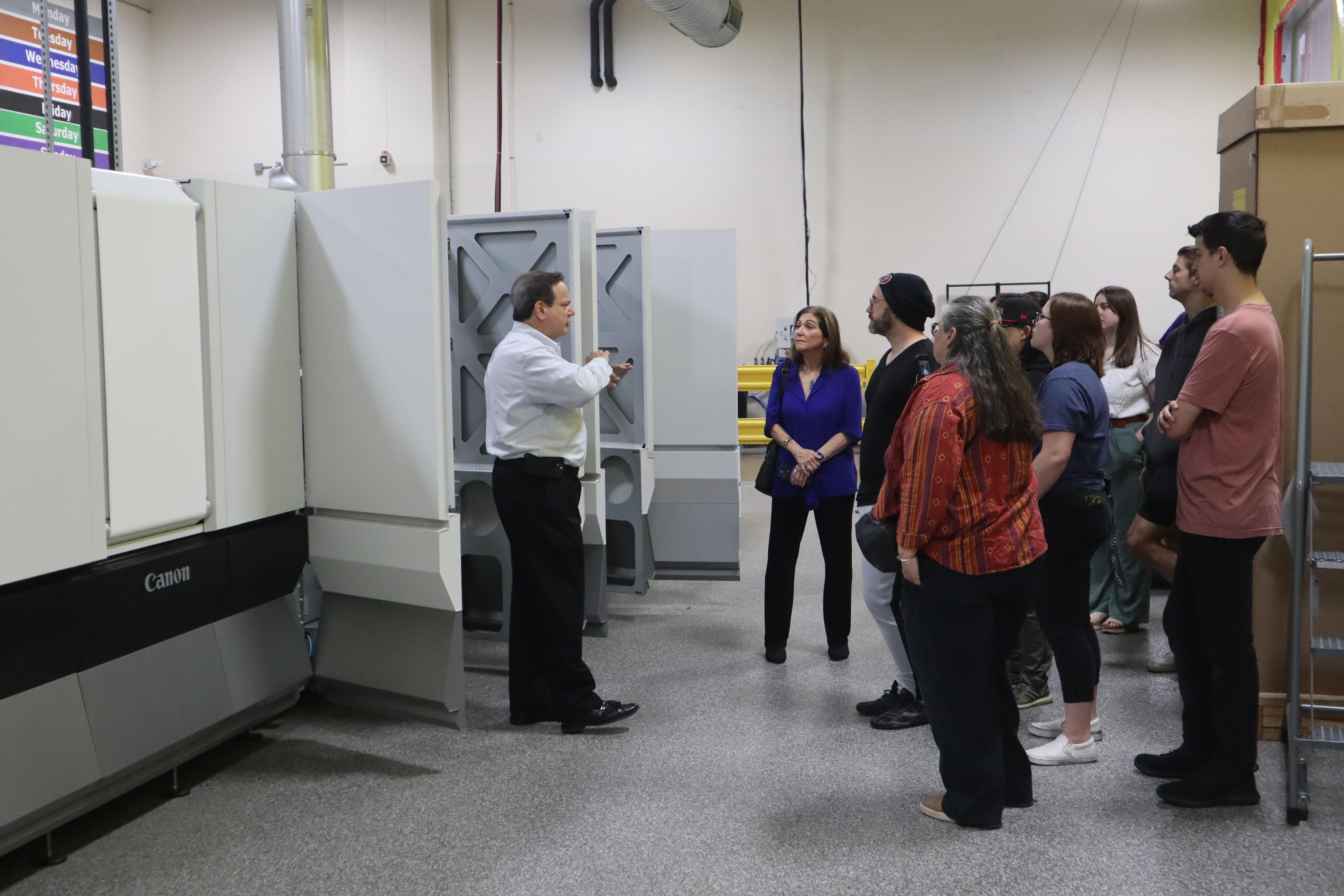 Canon Solutions America customer District Photo has demonstrated a continuous commitment to University Inkjet Program’s educational mission by hosting a field trip for ASU students for a second consecutive year. The global company has plants in the United States, Europe, and Australia, handling a range of complex jobs from photography printing, ink printing, sublimation, and publishing, among others. Recently, District Photo added a new ProStream 3000 that can deliver offset quality with industrial speed, inkjet flexibility, plus a host of innovative processing technologies. This has helped to bolster a fleet that already included the ProStream 1800 continuous feed inkjet printer, empowering one of the largest print fulfillment companies in the world to continue to thrive. District Photo, founded in 1949, operates a global fleet of eight ProStreams. Due to its inkjet growth, the company is looking to expand and take on new applications and business opportunities.