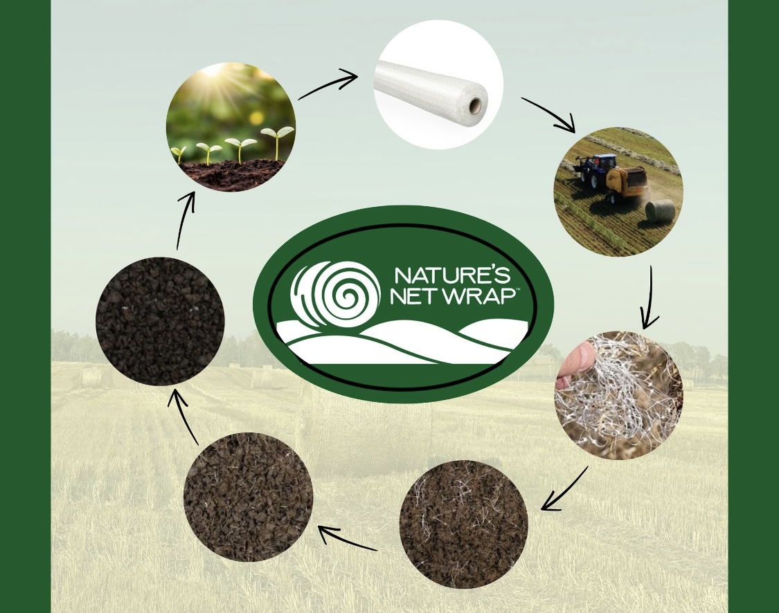 Nature’s Net Wrap has developed the world’s first compostable bale net wrap, which is made from a blend of biopolymers and natural fibers that have been tested extensively. It exceeds all global certification requirements and is currently patent pending.