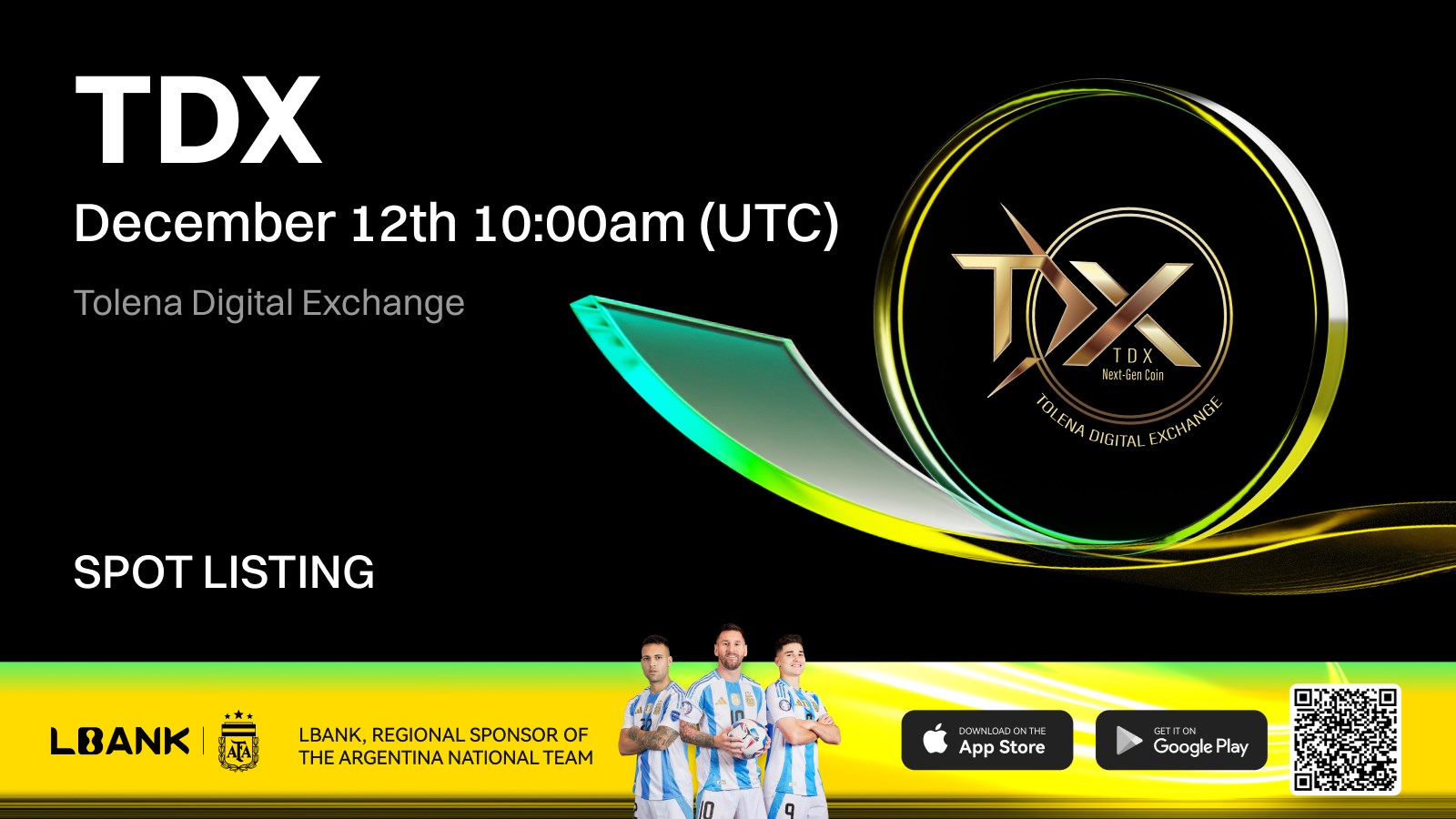 Road Town, British Virgin Islands--(Newsfile Corp. - December 9, 2025) - LBank Exchange is pleased to announce the listing of Tolena Digital Exchange (TDX). Trading for the TDX/USDT pair will open at 10:00 UTC on December 12, 2025.