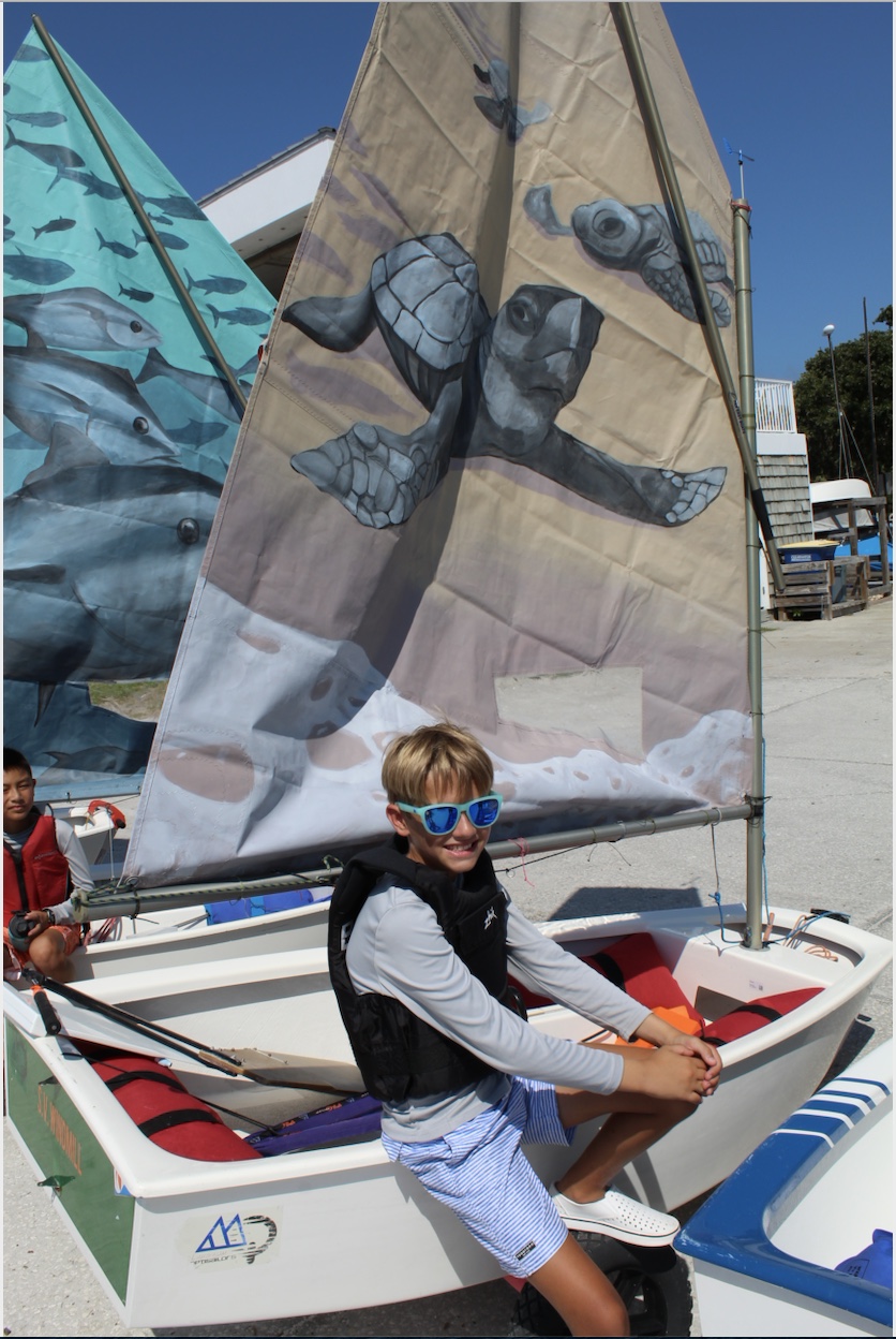 The Gibbs High School students are painting 11 Opti Sails that will be used to connect art, inclusion, and sailing. CCSC will also use the Opti boats with the 11 Pop & Street Sail Art, to create a floating art boat parade around Clearwater to display the students’ works on July 9th at 10 am and practice throughout the summer.